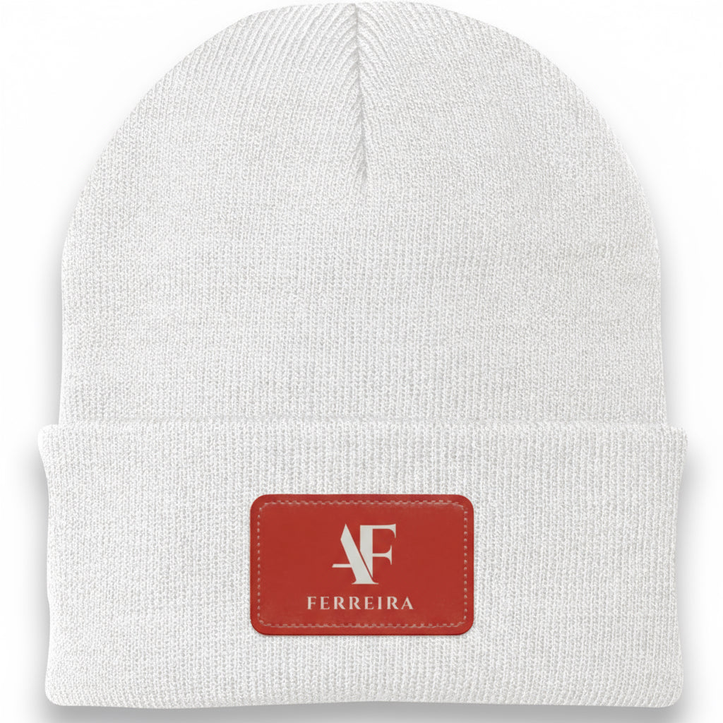 Warmth without weight. Soft acrylic knit with a folded cuff and signature patch - clean, balanced, unmistakably AF.